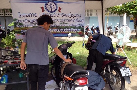 ประจำปีการศึกษา 2557 โดยออกให้บริการซ่องบำรุง รักษาเครื่องยนต์ ตรวจเช็ค เปลี่ยนถ่ายน้ำมันเครื่อง ไม่คิดค่าบริการให้แก่บุคคลทั่วไปในชุมชนประชาหรรษา ณ จุดบริการบริเวณหอพักชาย-หญิงพณิชยการ มีประชาชนและบุคคลทั่วไปมาใช้บริการทั้งรถจักรยานยนต์และรถยนต์ร่วมกว่า 50 ราย