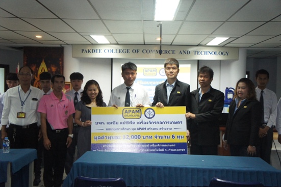 กับวิทยาลัยอาชีวศึกษาภักดีพณิชยการและเทคโนโลยี เพื่อจัดการศึกษาระบบทวิภาคี สาขาวิชาเครื่องกลการเกษตร ระดับปวส.ในปีการศึกษา 2557 ทางบริษัทได้เล็งเห็นความสำคัญของการจัดการอาชีวศึกษาเพื่อผลิตกำลังคนสู่ตลาดแรงงานรองรับการเปิดเวทีประชาคมอาเซียน จึงได้พิจารณาทุนการศึกษาให้แก่นักศึกษาที่ได้ทำการคัดสรรแล้ว จำนวน 6 ทุนๆละ 12,000 บาท และรับประกันการมีงานทำกับบริษัทหลังจากสำเร็จการศึกษา ในการทางบริษัทได้มอบหมายให้ นายกิตติเมศว์ รวีสุขธนาศักดิ์ ผู้จัดการฝ่ายการเงินของบริษัทและคณะ นำทุนมามอบให้แก่นักศึกษา ระดับปวส. สาขาเครื่องกลการเกษตร เมื่อวันที่ 25 กันยายน 2557 โดยมีดร.พิทักษ์ มหบุญพาชัยและคณะผู้บริหารให้การต้อนรับเป็นอย่างดียิ่ง