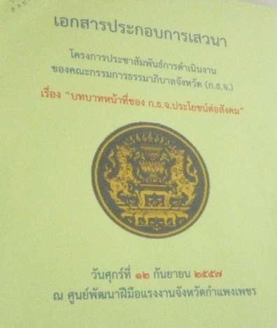 เมื่อวันที่ 12 กันยายน 2557 คณะกรรมการธรรมาภิบาลจังหวัดกำแพงเพชร(ก.ธ.จ.)