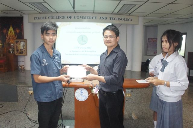 ได้จัดกิจกรรมมอบเกียรติบัตรและทุนการศึกษาให้แก่นักศึกษาที่มีผลการเรียนดี และนักศึกษาที่มีความประพฤติดีมาโดยตลอดปีการศึกษา 2556 โดยได้รับเกียรติจาก ดร.ธิติ มหบุญพาชัย เป็นประธานมอบร่วมกับนางธิติมา เสาวยงค์ ในฐานะผู้บริหารของวิทยาลัย มีนักศึกษาระดับปวช.ทุกแผนกสาขาวิชาเข้ารับมอบทุนในครั้งนี้ จำนวนกว่า 50 คน