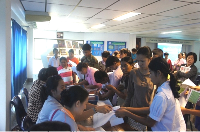 มอบตัวและรับทุนการศึกษาตามนโยบายการรณรงค์ให้ผู้เรียนศึกษาต่อสายอาชีวะให้มากขึ้นของกระทรวงศึกษาธิการ เมื่อวันที่ 26 เมษายน 2557 ดร.ธิติ มหบุญพาชัย ได้กล่าวถึงความสำคัญของการเรียนอาชีวศึกษา และการเตรียมตัวเข้าสู่ตลาดแรงงานต้อนรับการเข้าสู่เวทีประชาคมอาเซียน และได้มีการมอบทุนการศึกษา อุปกรณ์การเรียน เสื้อผ้าชุดนักศึกษาให้แก่นักศึกษาที่ดำเนินการมอบตัวเข้าเรียนกับวิทยาลัยในปีการศึกษา 2557 ดังกล่าว